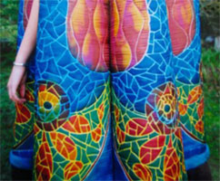 Gaudi’s Girl 1999The inspiration for this piece comes from the Spanish Architect, His buildings are famous for their vibrant colours, exquisite detail and poetic expressiveness. The stained glass windows. The richly textured surfaces. The highly decorative tile work. All are a source of delight and inspiration for me. I would like to pay tribute to the Modernmismo movement and the great visionary, GAUDI. |